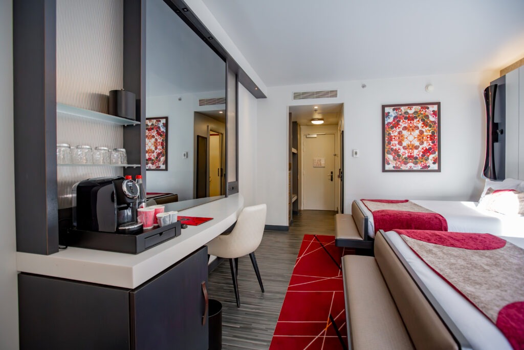 De kamers en suites hebben een moderne uitstraling met hier en daar subtiele Marvel-accenten, zoals in de kunstwerken en de kleuren. In de standaardkamers kun je prima uitrusten na een dag in de parken.