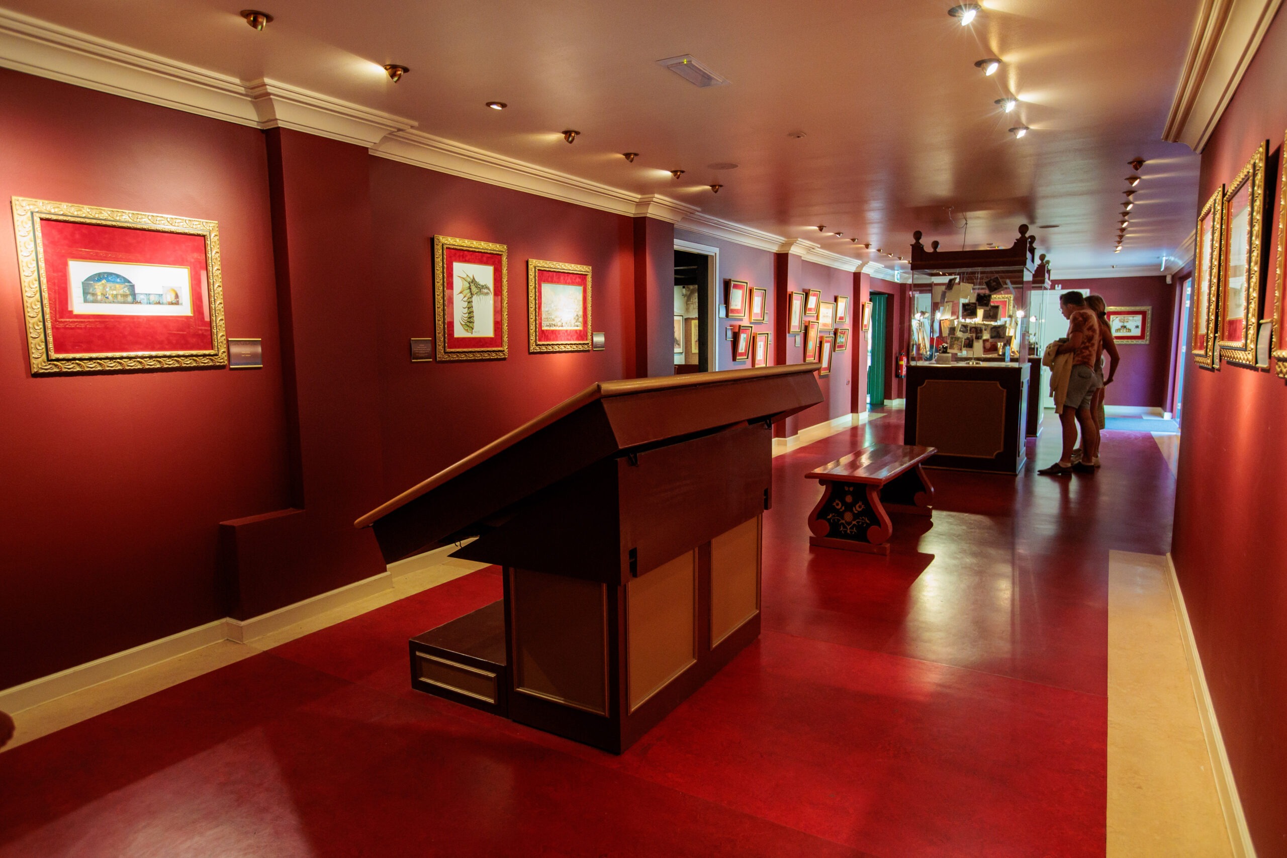 In de aangrenzende ruimte kom je de interactieve Efteling plattegrond tegen. Via dit touchscreen kun je door de Efteling navigeren. Kies een locatie en ontdek allerlei feitjes over de plek die je hebt geselecteerd. Als je om je heen kijkt, zie je dat de muren bezaaid met oude Efteling ontwerpen, ooit getekend door de ontwerpers van de Efteling.