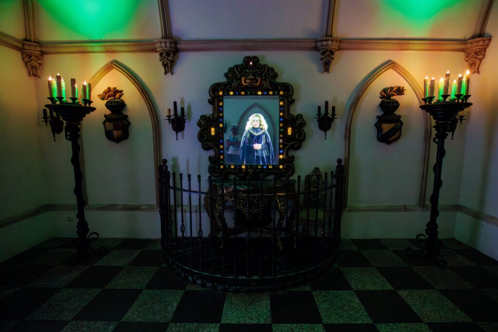 Wanneer je voorbij de spiegel bent, kom je terecht in de grot waar de zeven dwergen vol verdriet rondom de kist van Sneeuwwitje zitten. Zal Sneeuwwitje ooit nog wakker worden?