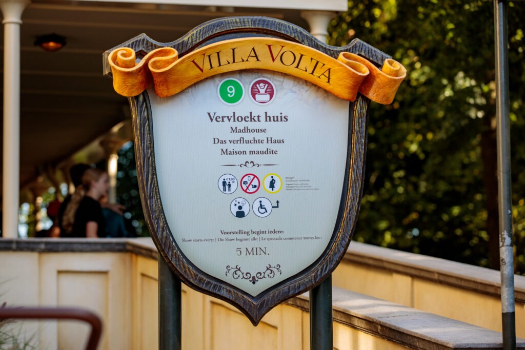 Voor Villa Volta is een speciale mindervalide wachtrij, deze vind je naast de ingang. Ben je niet in de gelegenheid zelfstandig de attractie te betreden? Dan kun je er helaas niet in, maar er is wel een speciale ruimte waar je een video kan zien over de attractie. Zo krijg je het toch nog een beetje mee!