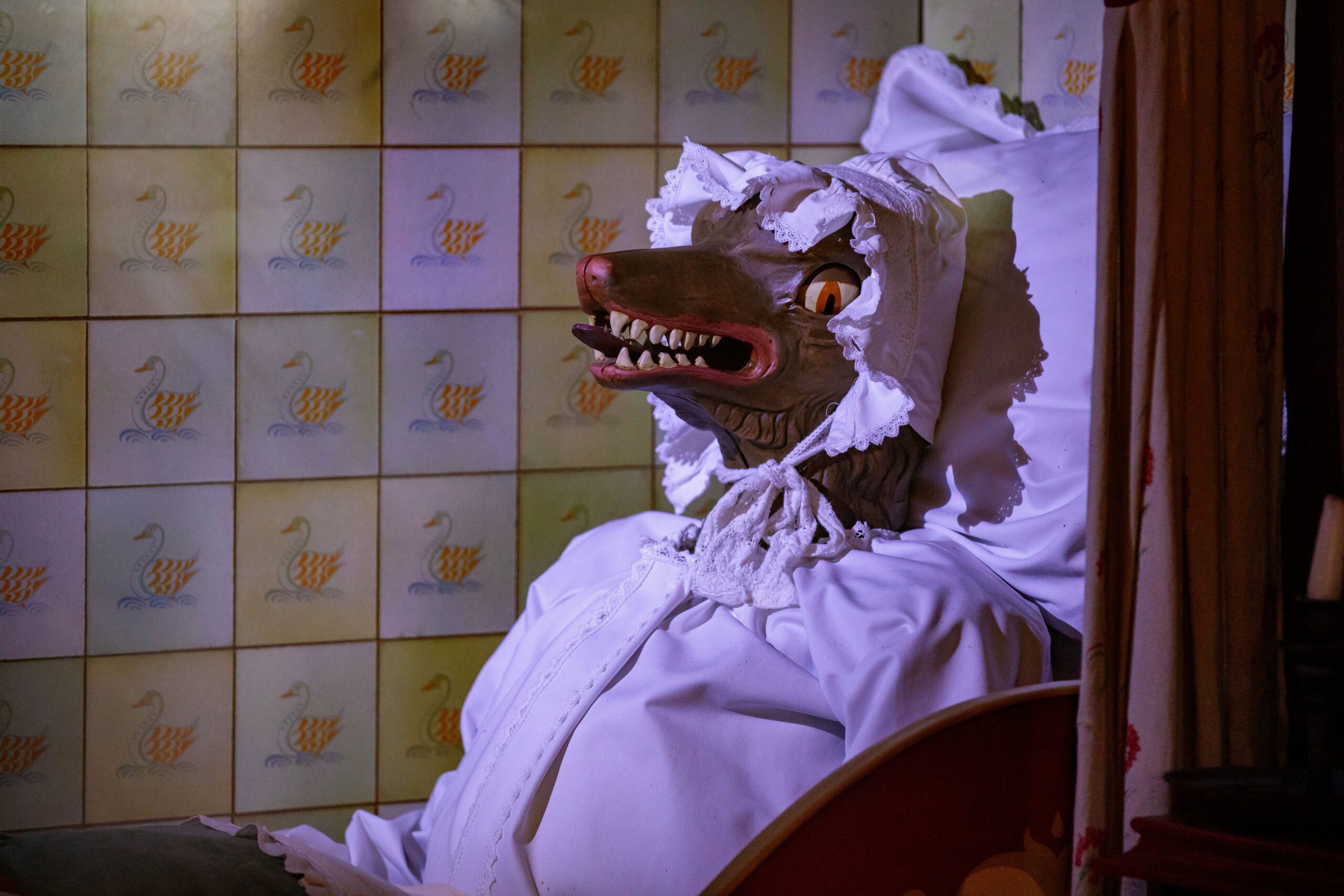 Kijk binnen in het huisje van grootmoeder. Roodkapje staat voor de deur, maar weet niet wat er zich binnenin afspeelt. Binnenin het gezellige huisje ligt er een onaangename verassing op haar te wachten. Namelijk de grote boze wolf!
