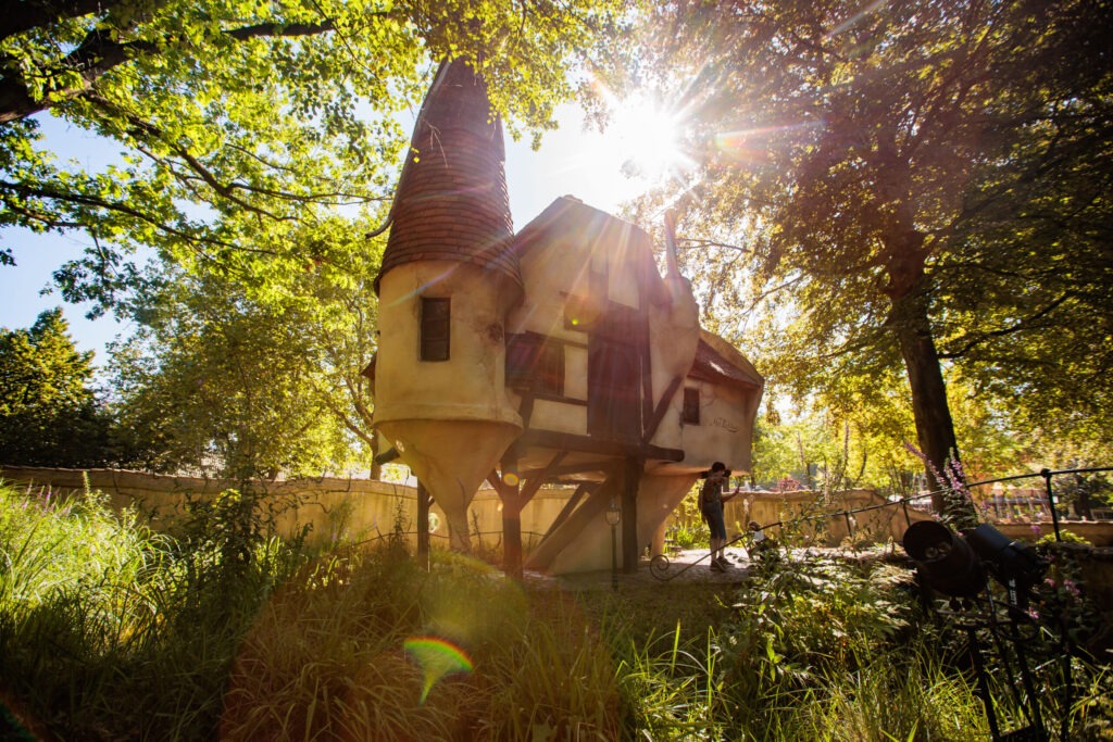 Lachen, gieren en brullen in het Lachhuys. Dit simpele huys beschikt over een bijzondere trap. Als je de trap op of afloopt, klinken er verschillende, grappige geluiden.